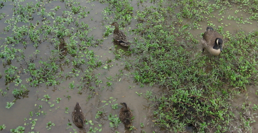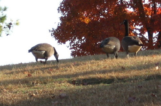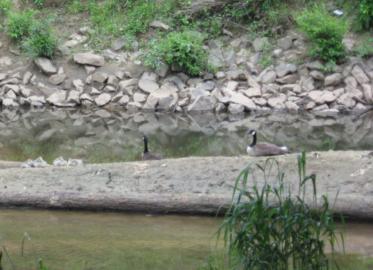 […] and the surrounding (relatively wooded) apartments and houses. The Canada geese, well described in an earlier post, are so numerous and boisterous as to evoke aquatic chickens as they honk out the rising day […]