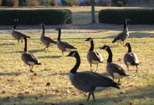 Geese in our local waterways seem to fit in quite well and present scenic views of gosling-raising. But in shopping centers, golf courses and suburban commons, they are an unwelcome intrusion from the natural world whose territory we inexorably diminish each year. (pertinent comment here)