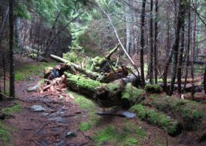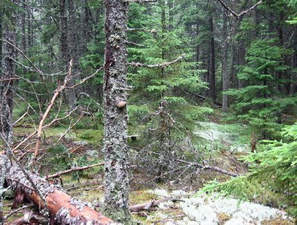 It is a country full of evergreen trees, of mossy silver birches and watery maples, the ground dotted with insipid, small red berries and strewn with damp and overgrown rocks, – a country diversified with innumerable lakes and rapid streams.          H.D. Thoreau, Ktaadn