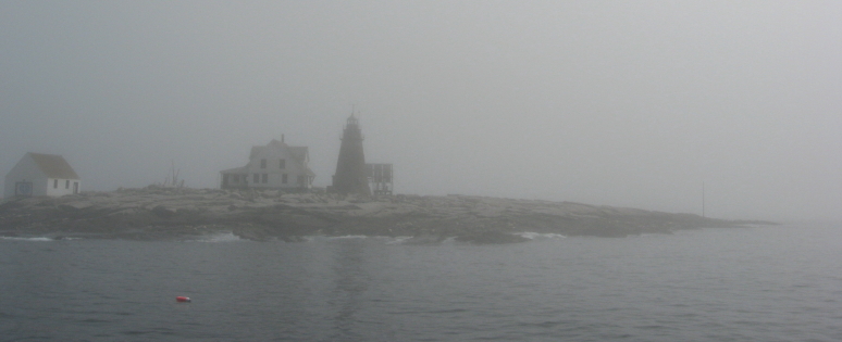 The two boat trips we took showed us no whales (thus the double trip) but lots of interesting sights and tales.  The official (and unsuccessful) whale watch took us all the way out to an amazing outpost on the continental shelf, Mount Desert Rock, whose intrepid lightkeepers maintained their residental post until the late sixties.  We saw lots of harbor seals and some gray seals there.  Our bonus nature cruise was just as foggy, but lightened by the salacious gossip of our nature guide, a grizzled native who had taught biology for 30 years but seemed much more interested in talking about the various owners of mainland and island properties than locating wildlife.   Bar Harbor history and the development and donation of Acadia represents a fascinating portrait of big money, monster money, and the economies of land use. Pre-income tax money built an large array of mansions, styled (50 room) “cottages” by their wealthy summer inhabitants, but almost all burned in a massive 1947 fire and were never re-built.  Modern billionares still have summer homes, but are likely to cooperate with the nature groups in maintaining the natural habitat around them.  Acadia, the first national park east of the Mississippi, was founded by George Dorr, a wealthy wilderness lover whose namesake mountain we half-climbed.  He, Rockefeller and others bought the many thousands of park acres one farm at a time.   The pristine, forested small islands we saw on this trip were bare, sheep-mown homesteads well into the twentieth century, and modern conservation acquisitions focus on these .  As commerce disappeared from the coastal waters and tourism rose as the leading industry, the island transformed from fishing and boat-building villages into Acadia-aligned restaurants, campgrounds, motels and services.  There are still plenty of boats and a healthy lobster fishery, which history we explored at a local nature museum and lobster hatchery.