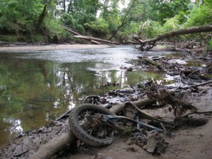 Edisto barely qualifies as an island because at its northern tip, the Edisto River sends part of its flow on a different path toward the ocean, forming the North Edisto. The larger area of which it is part is called the ACE basin, for the Ashepoo, Combahee and Edisto rivers that flow through it. The 350,000 acres are about half wetland, and comprise one of the largest wetland natural areas on the East coast. Our beach house stood at 4 meters above sea level. Ten miles back up Highway 174 toward 17, the marshes beside the road are at 5 meters and the high point at the middle of the area has a wooded rise that is just 18 meters above the sea. That’s flat=wet! This is one of the main reasons excessive development has not reached the area , because very few through roads connect the necks of the woods, which are everywhere fragmented by marshes. The ride pushes back such that even inland where the waterways are not brackish the fresh water rises and falls with the tidal rhythm that allowed rice to be grown and harvested.