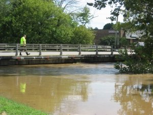 When I first returned to Raleigh from Greensboro in 1980, they were starting to build the Raleigh Boulevard bridge over Crabtree Creek. The caissons they used to sink the bridge piers were impressive, and Dulci, my black lab and I kept a close watch on the process. At this time, the “Raleigh Swamp” area was a sometime wetland dotted with scrub trees and ribboned with the paths of homeless campers. Like many floodplains in the area, it got wet in the winter but stayed dry most summers. The Boulevard project changed that, with a little help from the local beavers. The transition was clarified for me by a city engineer years later through a comment on this blog in 2009. I quote it in full below: