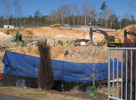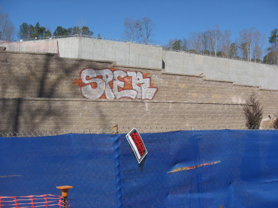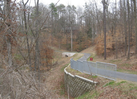 The crossing of the greenway with a utility cut has been strengthened and guarded with metal gates. The northwestern end of the site has a short stretch of asphalt that has repeatedly been ruined as the flooded marsh cuts through the shoulder of Crabtree and dumps excess water into the creek. looks like they are going to repair (instead of culvert) it once again, but this spot has closed the causeway, officially that is, for months. Most people just make their way around the mild barricades.