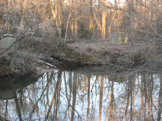 Just down the road from this, where Milburnie hits the extension of Sunnybrook across New Bern, the old beginning of the Raleigh Greenway, Buckeye Trail, will soon be extended all the way down to Anderson Point, where Crabtree hits the Neuse River. Very exciting! Right now the spot is part of the huge sewer work alluded to in the first sentence. The first picture below is looking toward Milburnie and is actually the path of the new extension. The new greenway should be in place this spring.
