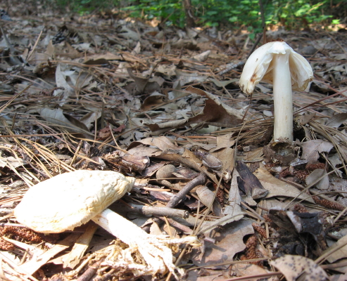 North Carolina’s Piedmont and Coastal Plain boasts over fifty species of mushrooms, according to the Duke Mycology page. I would not begin to identify positively any of these, but they are fun to examine and track as they release their spores and decay.