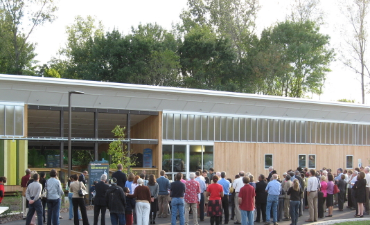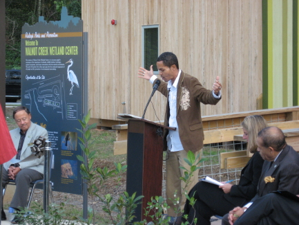 Numerous city and parks officials joined a large crowd of citizens for the ribbon-cutting ceremony celebrating the opening of The Walnut Creek Wetland Center.