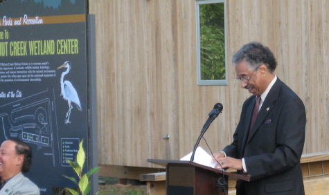 Dr. Norman Camp listened to Mayor Charles Meeker, city councilman James West and park officials speak about the new center. Then the founder of Partners for Environmental Justice , and the man who sheperded this project into being, got up and spoke of the center as a shining new gem in Raleigh’s crown,” as quoted on Raleigh Eco News.
